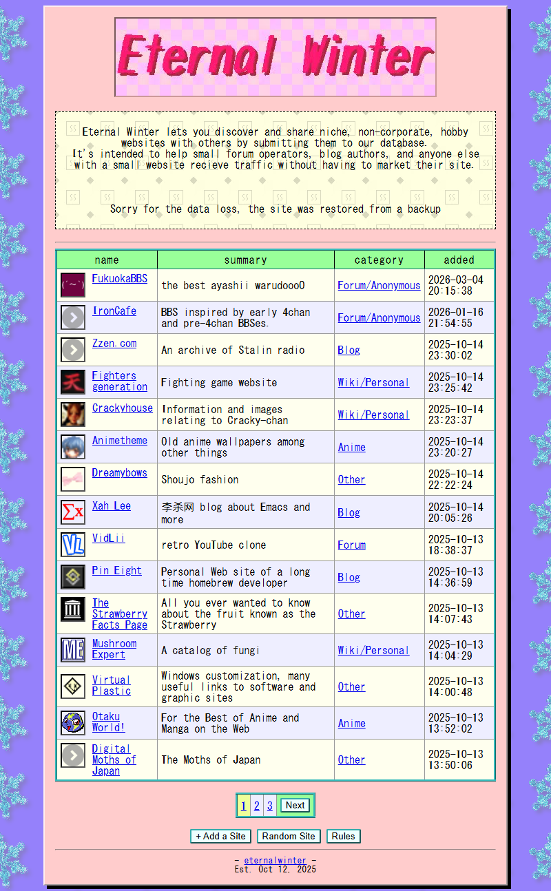 I meant to use this to find new sites but I was busy trying to save my sinking ship of a life. Have this screenshot anyways.